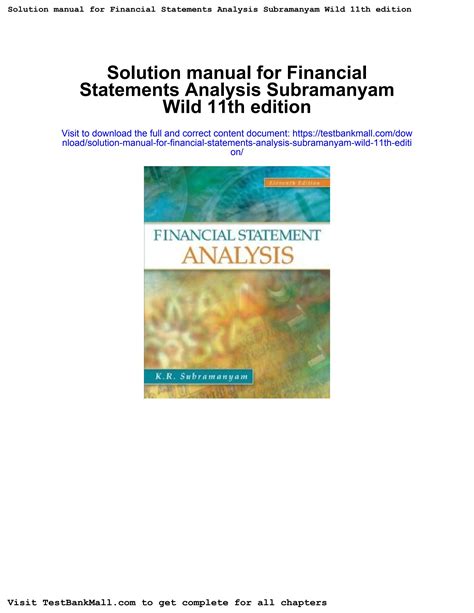 Download solutions to financial statement analysis john subramanyam Reader online is a convenient and frugal way to read solutions to financial statement analysis john subramanyam you love right from the comfort of your own home. Yes, there sites where you can get Reader "for free" but the ones listed below are clean from viruses and completely legal to use.